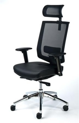 KezdőlapBútorokIrodabútorokIrodai székekExkluzív fejtámaszos irodai szék, fekete bőrborítás, feszített hálós háttámla, alumínium lábkereszt, MAYAH "Maxy"