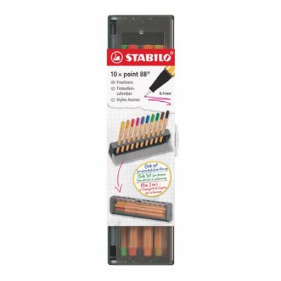 KezdőlapIrodaszerekÍrószerekRostirónok és tűfilcekTűfilc készlet, 0,4 mm, STABILO "Point 88", 10 db-os asztali készlet