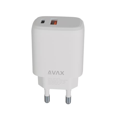 Hálózati töltő, USB-A + USB-C, 12W, AVAX "CH312W Speedy", fehér