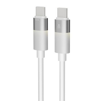 Töltőkábel, USB-C - USB-C, 60W, 1 m, AVAX "CB316 Glowy", fehér