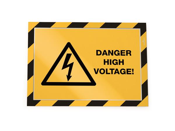 Infokeret, A4, öntapadó háttal, DURABLE "DURAFRAME SECURITY", sárga-fekete